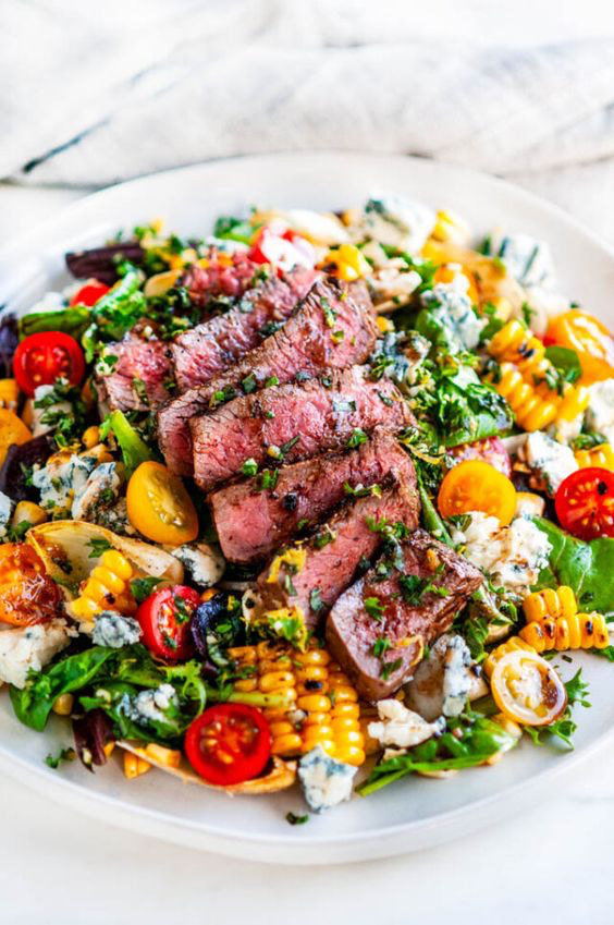 9. Balsamic Steak Gorgonzola Salad with Grilled Corn