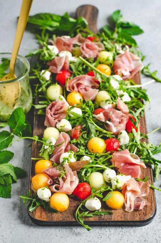 7. Melon Prosciutto Salad with Mint Basil Vinaigrette