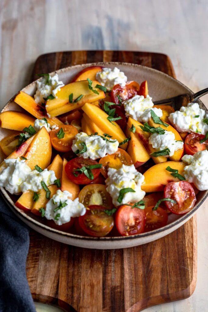 8. Peach Burrata Salad with Champagne Vinaigrette