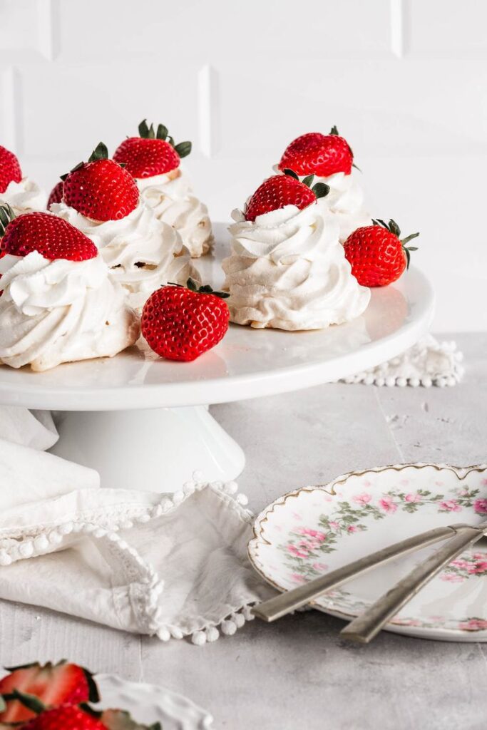 Wimbledon is synonymous with strawberries and cream, however, you can serve something a bit more involved and tasty. Opt for a strawberry-and-cream-inspired dessert instead. Like these amazing strawberry mini pavlovas that have a light and creamy whip and fresh strawberries.